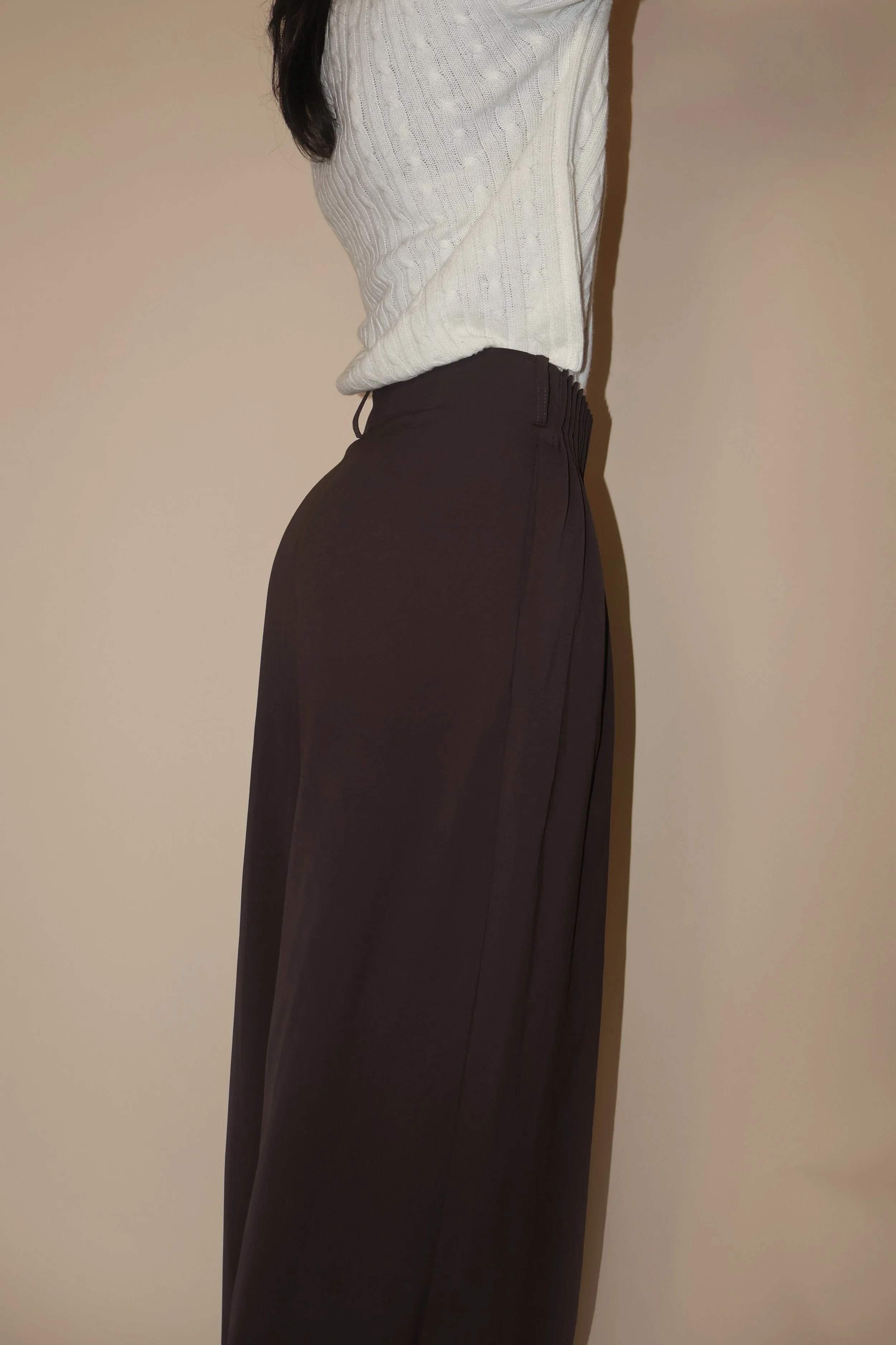 The Sloane Pleated Skirt blends sharp tailoring with fluid ease. Its structured waistline features soft flap details that flow seamlessly into crisp accordion pleats, creating a silhouette that is both polished and feminine. The asymmetrical hemline adds a touch of modernity, making her an elevated essential in every way possible.